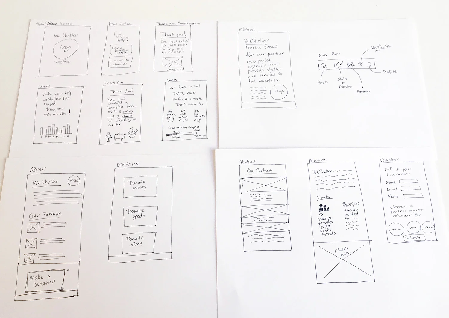 We thought that the app could use better navigation, more numbers and stats, better button design, infographics, and more information about WeShelter and their mission. Here is a list of new or improved features we would recommend for the app: